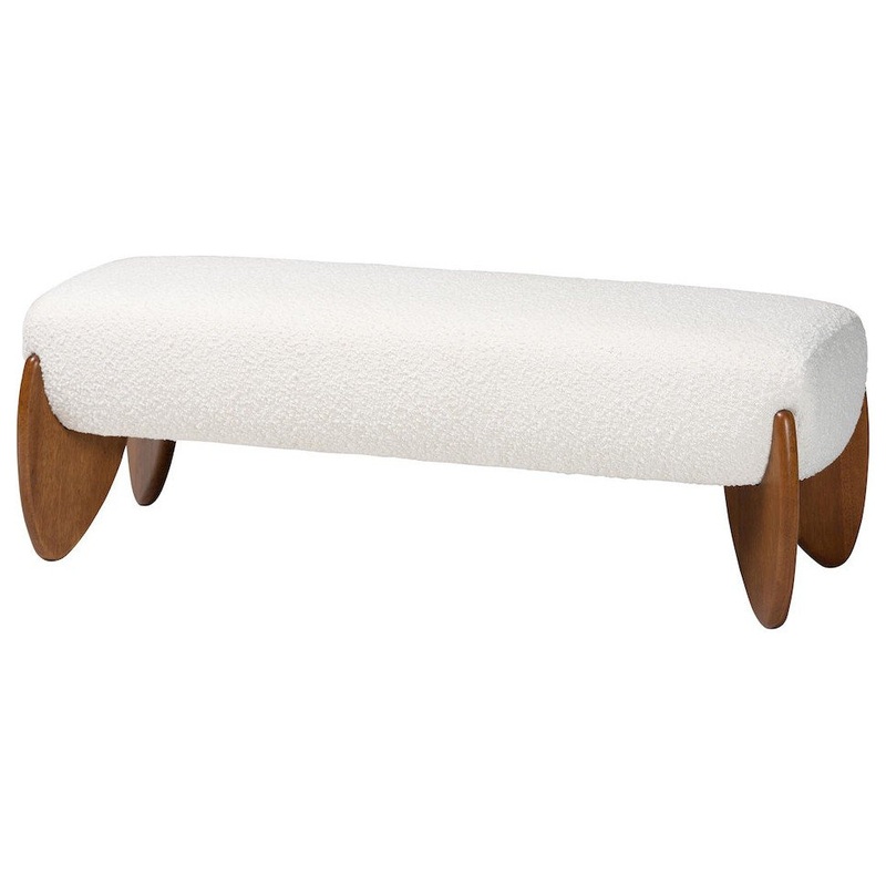 The modest luxury of the Vinicio accent bench exudes a refreshing ambiance in your space. Made in Malaysia, this Mid-Century Modern inspired piece consists of a sturdy wood frame padded with plush foam and upholstered in sumptuous boucle fabric. Its wide s