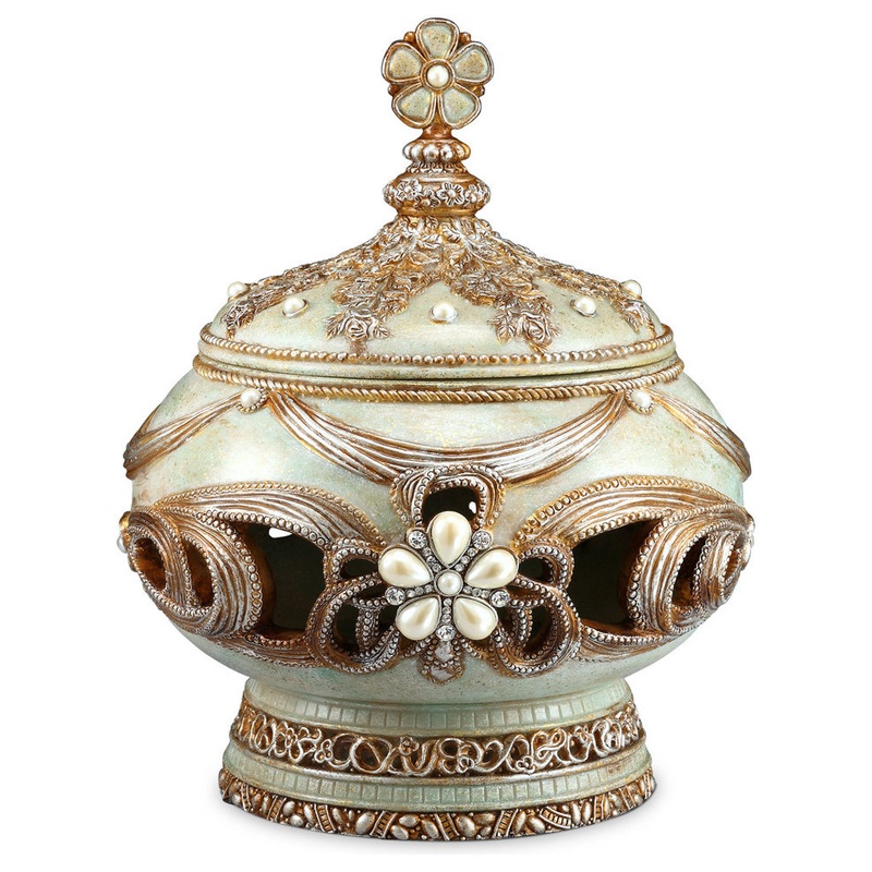 Decorate a nightstand or side table with the elegant decorative box. This decorative box has an elegant design and hand painted finish; this decor is sophisticated and pretty. Use it to hold everything from loose jewelry to trinkets or as a decorative box for your living space.