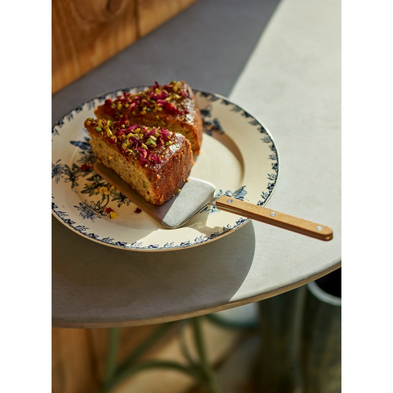 - A wooden cake slice inspired by antique cutlery- Crafted from stainless steel with a satin finish - Natural teak handle- For generously dividing and serving a fresh bake or summer tart