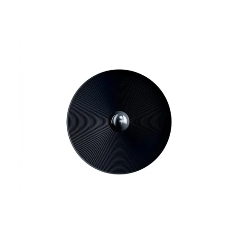 An extremely graphic lamp, Vinyl is made up of a metal surface with an engraved circular pattern similar to a vinyl record that seems to emulate sound vibrations while breaking down the light in a way that is captivating to the human eye. Vinyl is a versatile suspension and wall lamp in turned metal, also perfect as a suspension element. It is available in two sizes, 60 and 32 cm in diameter, and two finishes: silver and deep black. For the wall and suspension variants, we recommend the use of shielded cap bulbs for an indirect light effect that grazes the surface, which will seem to vibrate.