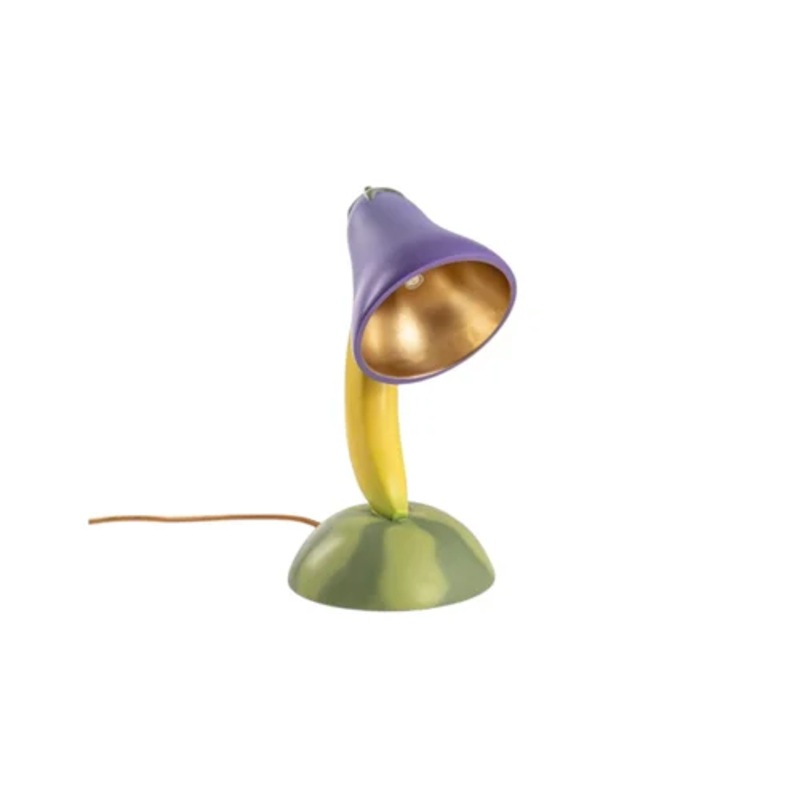 This imaginative piece features an aubergine-shaped lampshade, with a banana and a slice of melon forming its supporta true celebration of fresh produce through light. Working with a voltage of 220, it combines practicality with its fantastical design elements. Perfect for those who desire a touch of humor and surprise in their decor, this lamp provides a lively ambiance, inviting creativity and conversation in everyday spaces.