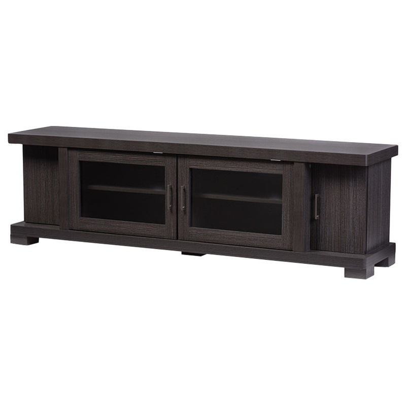 Viveka Dark Brown Wood TV Cabinet With 2 Glass Doors and 2 Doors, 70″ – Transitional – Entertainment Centers And Tv Stands