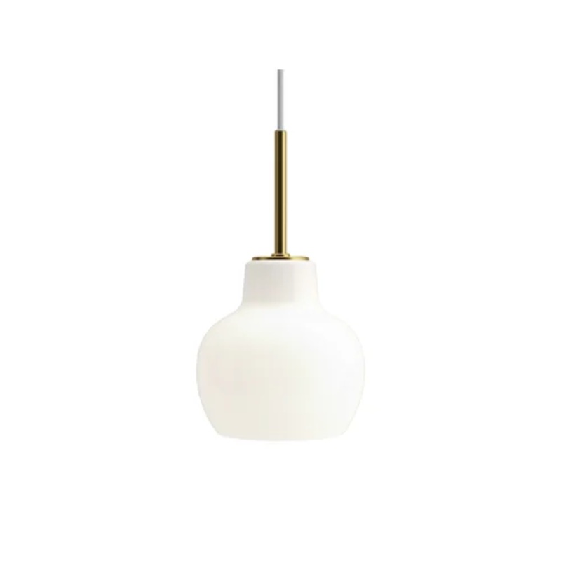 Vl Ring Crown is a collection of lamp designed by Vilhelm Lauritzen for the brand Louis Poulsen. Made in glossy white opal glass and untreated polished brass.