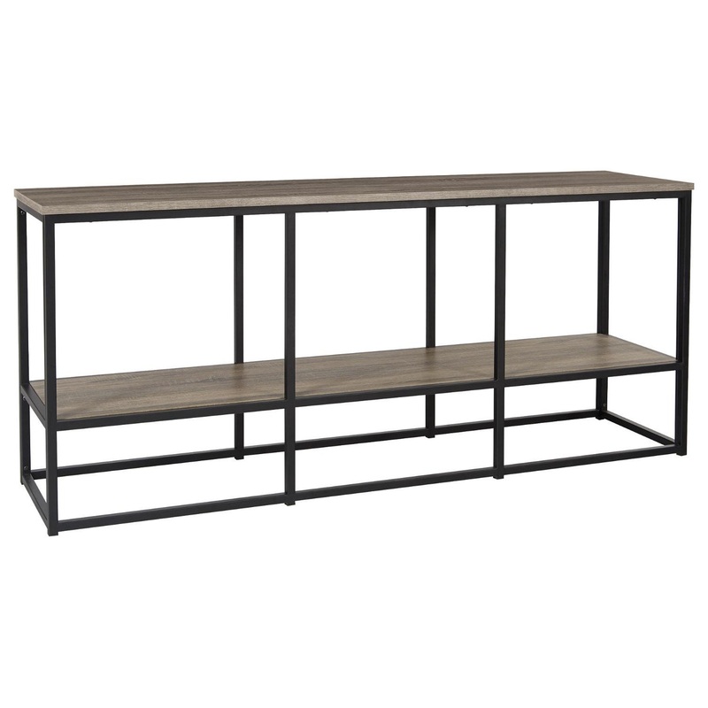 Making a great case for casual contemporary design with an urban attitude, the highly versatile Wadeworth TV stand is loaded with possibilities. Its cool combination of weathered replicated wood grain and linear black metal is a mastery in open-concept sty