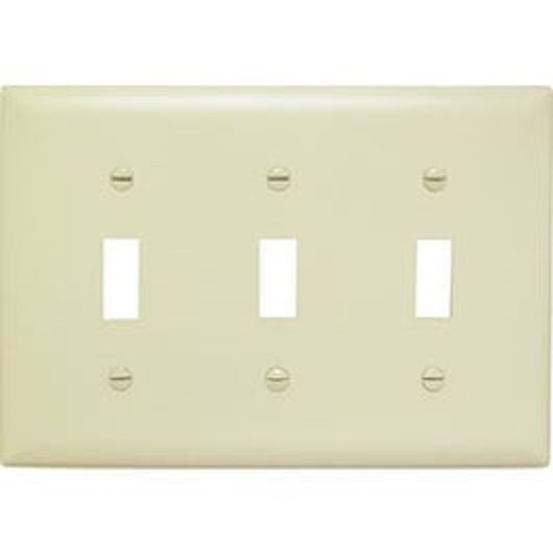 Ivory, 3 Gang, 3 Toggle Openings, Urea Wall Plate, UL, CSA, Cello Wrap.