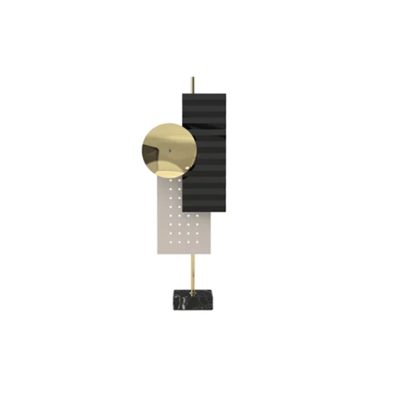 Wallie Table LampWallie is a Table Lamp designed by Lorenza Bozzoli and produced by the TATO Brand.This table lamp designed by Lorenza Bozzoli is made of precious black Marquinia marble. The base cube supports expertly worked brass plates, which create a r