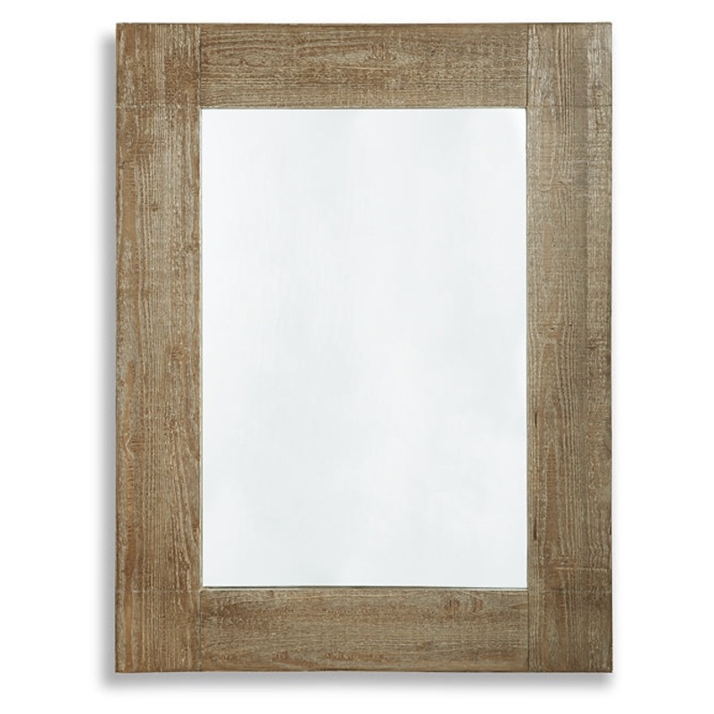 This accent mirror merges casual style with a clean, linear profile for a simple-yet-striking look. Its distressed brown finish has an enduring charisma, effortlessly pairing with your existing decor.Made with woodDistressed brown finishDue to the use of n