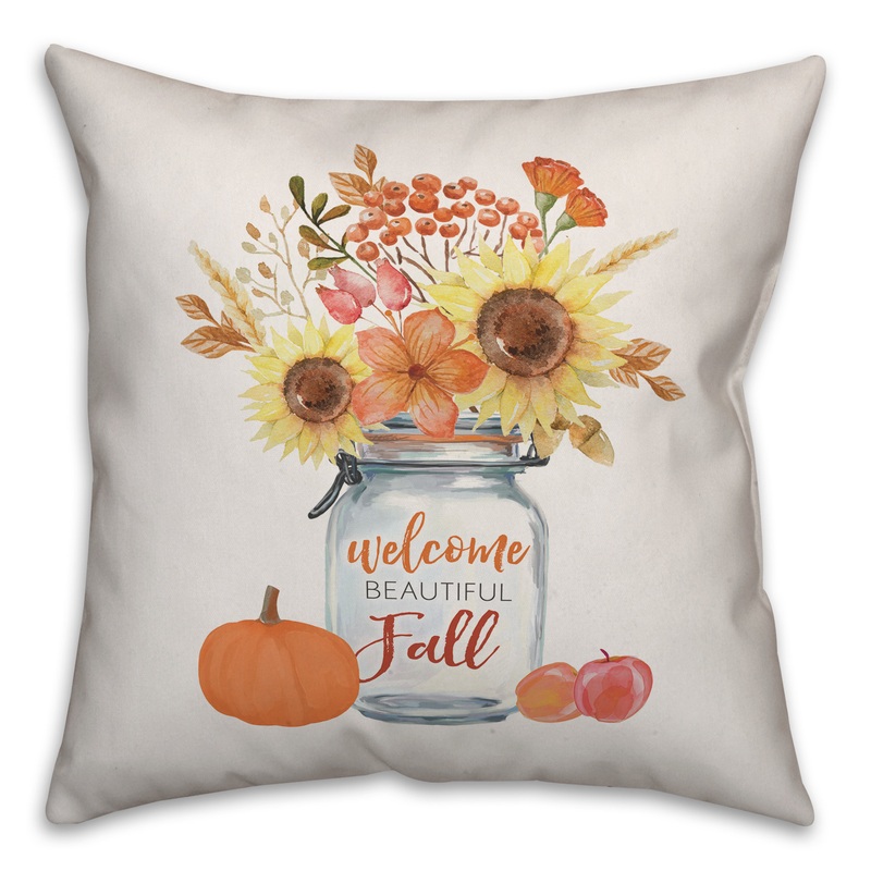 Welcome Beautiful Fall 20″x20″ Throw Pillow Cover – Farmhouse – Decorative Pillows – by Designs Direct