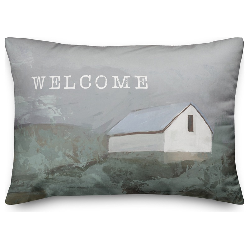 Welcome White Barn in Fog 14×20 Spun Poly Pillow, 14×20 – Farmhouse – Decorative Pillows – by Designs Direct