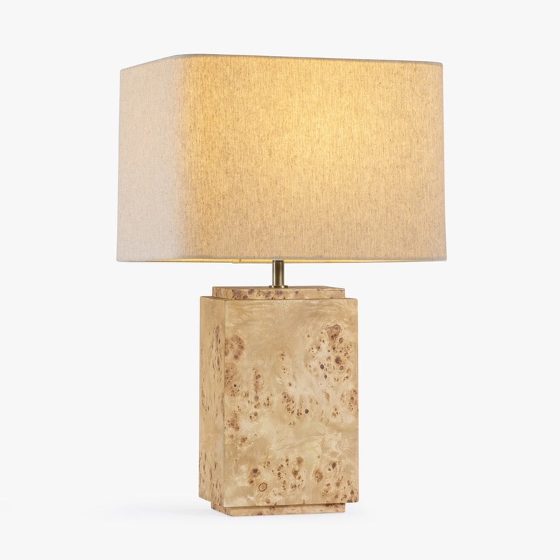 The Wesley Burl Table Lamp is a stunning piece that showcases the natural beauty of burl wood. Available in both light and dark burl finishes, this lamp adds a unique texture and warmth to any room. Its sophisticated design makes it a versatile addition to both modern and traditional interiors, providing soft, ambient lighting with a touch of refined elegance. Perfect for bedside tables, desks, or living spaces, the Wesley Burl Table Lamp elevates any setting with its distinctive character.