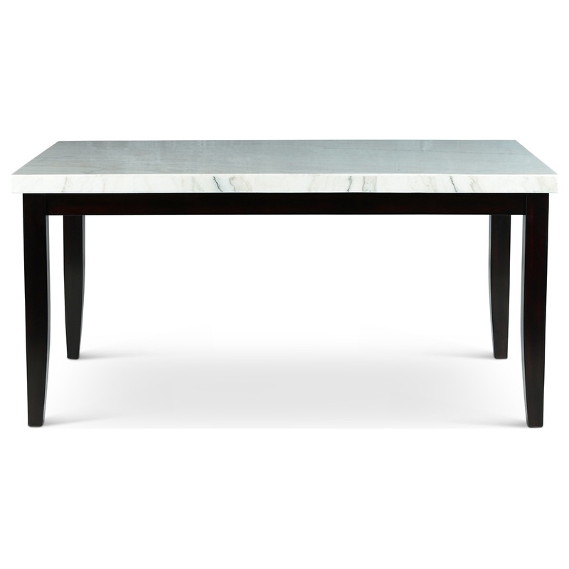 A modern take on dining, the Westby collection features a stunning white marble table top with hints of black mineral accents that coordinate with the ebony finished base. You can entertain up to six people comfortably and stylishly. Your purchase includes one dining table.