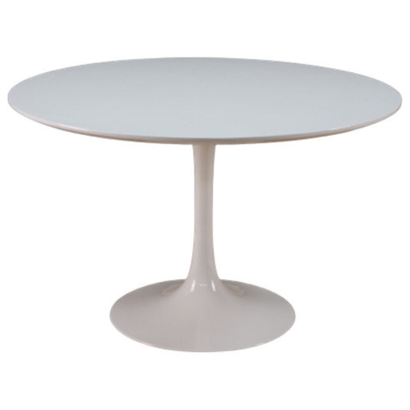 Sleek and sturdy, the White Tulip dining table offers retro style in a durable package. The tulip-style pedestal base is made from powder-coated metal for durability, and the entire table is finished with chip-resistant white paint for enduring use. Choose from four round sizes to suit your space and dining needs. Also comes in an oval shape.