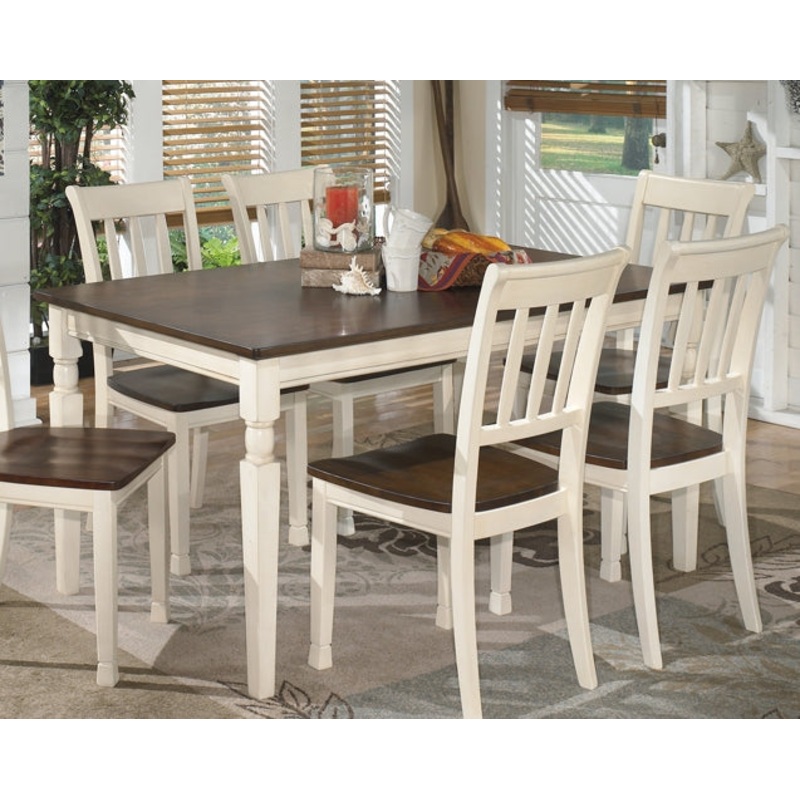Incorporate cottage-cool warmth in your dining space with this dining room table. A two-tone finish serves up twice the charm and character.
