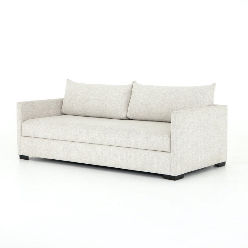 A simple, stylish silhouette redefines the classic sofa bed. With knife-edge pillows and high-performance upholstery, a discreetly concealed sleeper mechanism allows for one-step pullout with ultimate ease. Unfolded, sofa cushions form a comfortable Queen-