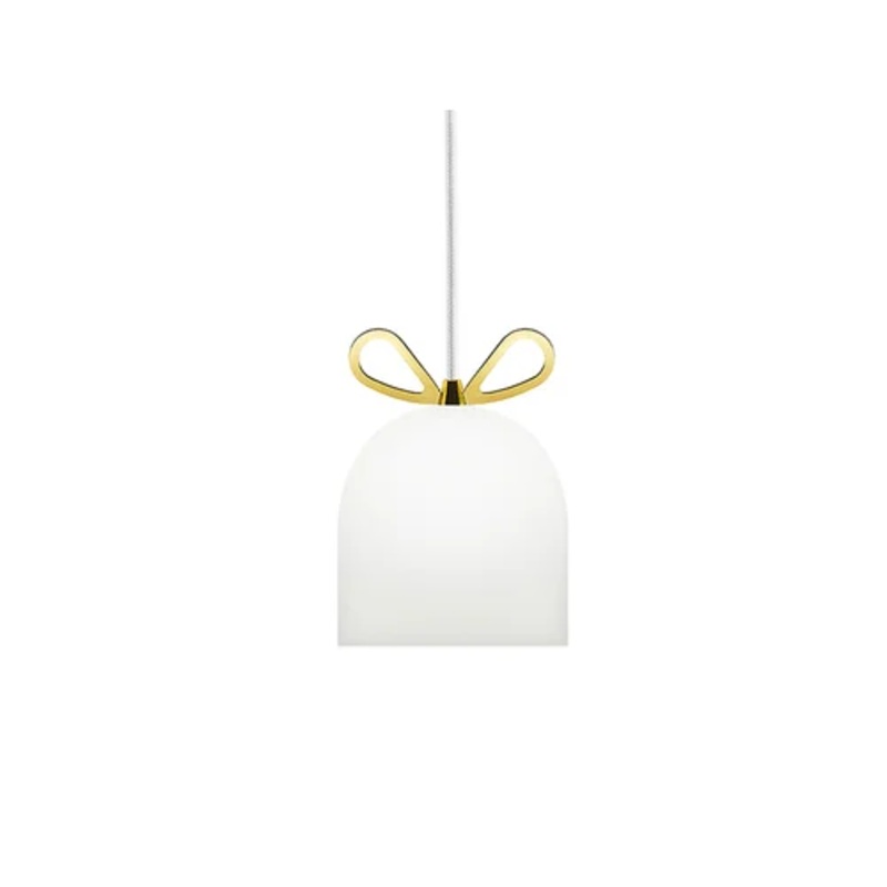 The humble wing nut, which is normally used as a purely functional component in engineering and assembly, is elevated and celebrated as a decidedly decorative feature. Made ‘precious’ by finishing in polished brass, and given pride of place, the wing nut now resembles a golden bow on top of the beautifully simple shade. The sophisticated construction of the frosted white glass shade is designed to diffuse the light evenly and create the perfect warm and well lit atmosphere.