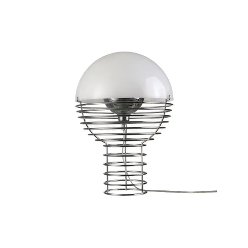 Wire Table LampWire is a futuristic table lamp in metal and plastic. Is characterized by a structure of cylindrical wire that widens into a hemisphere at the top, covered by a cap of plastic matt transparent. Cable of 2.2 meters with switch. 75Watt Max Bul