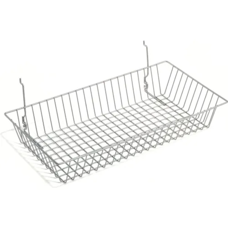 Wire baskets make excellent tool and small parts storage. Fits Slatwall, Gridwall & Pegboard.