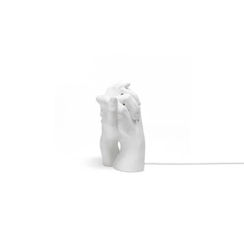 With Me Table lampWith Me Lamp is a table lamp designed by Marcantonio and produced by the Seletti Brand.This porcelain lamp, depicting two hands that intertwine, represent a bond of solidarity, of love. The internal light, when turned on, gives off a feel