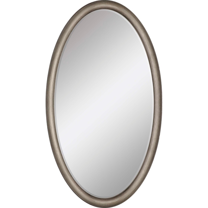 A versatile oval mirror in a antique silver finish features clean lines. (mirror size without frame 39 x 21)