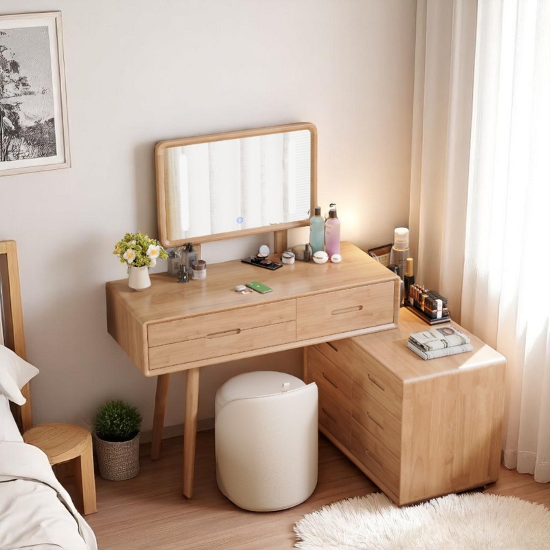 Wooden Vanity Table Set with LED Mirror – Multi-Functional