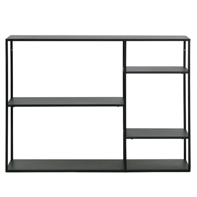 This multi-functional rack is made of black lacquered tubular steel combined with three black lacquered shelves (0.7 cm thick). A beautiful display shelving perfect for the entryway.