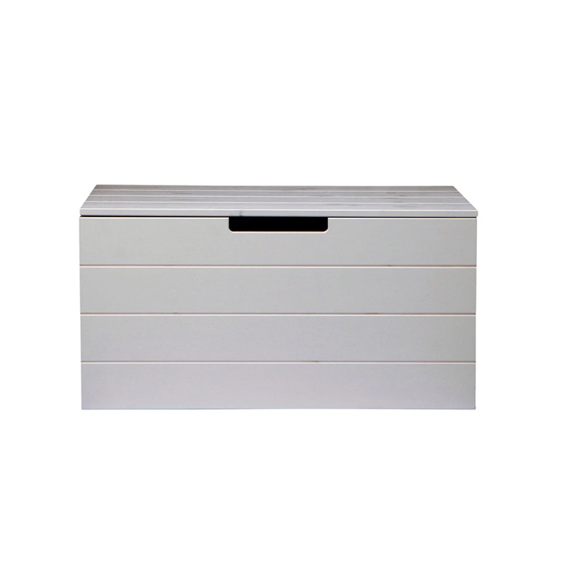 Designed with a sizeable storage compartment, the cut out handles ensure that it is safe for kids and easy to be moved around. The veins and knots are accentuated by brushing, giving the wood a vibrant look. This treatment can make unevenness, small cracks and knots extra noticeable – natural characteristics of lived wood. Each toy chest is therefore unique.