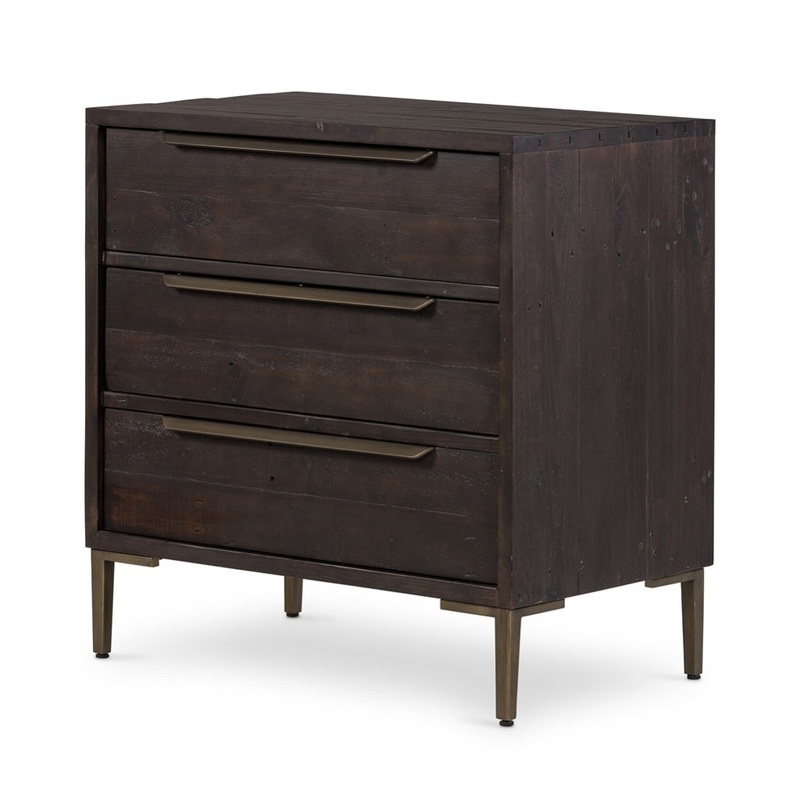 Alluring angles and streamlined accents bring a fresh edge to rich, reclaimed woods in the small Wyeth three drawer dresser. Inspired by contemporary European design, small legs and over-scaled hardware merge to emit statement-like effect in pieces suitable for mixing and matching with an array of dcor styles.