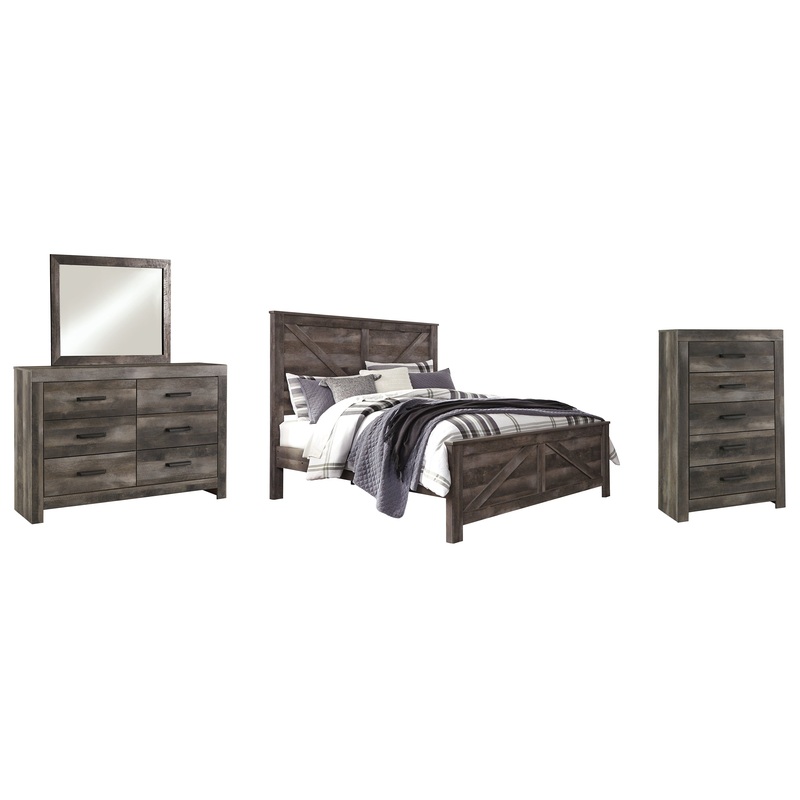 Wynnlow King Crossbuck Panel Bed with Mirrored Dresser and Chest