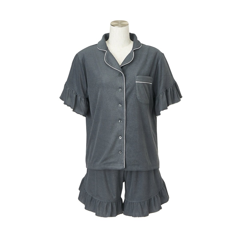 The ruffled design on the sleeves and hem is very trendy. We also recommend coordinating your wear with room shoes.