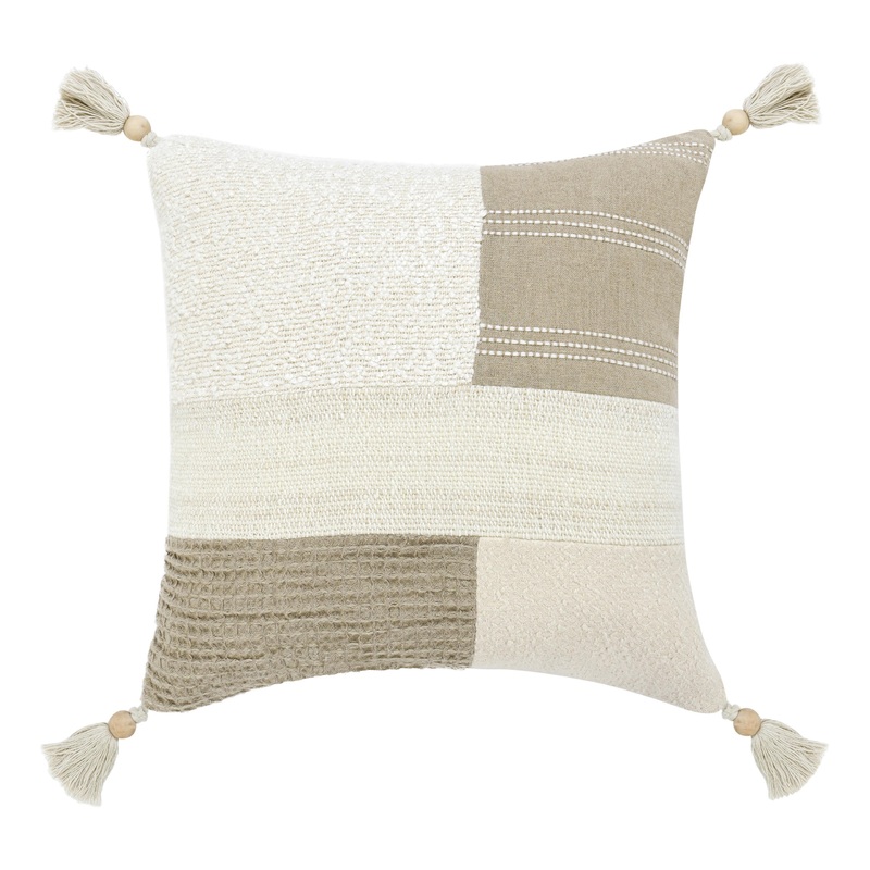 With its understated classic style, this pillow combines Belgian flax linen and cotton to create a crisp, subtle texture topped with a woven tape applique. Add this pillow to any space for a laidback touch of color and comfort.
