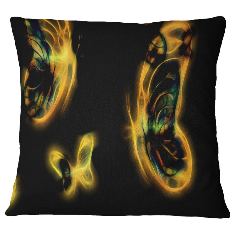 Yellow Fractal Butterflies on Black Floral Throw Pillow, 18″x18 – Contemporary – Decorative Pillows – by Design Art USA