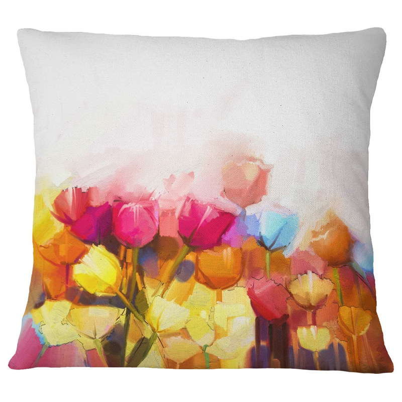 Yellow Pink Red Tulips on White Floral Throw Pillow, 16″x16 – Contemporary – Decorative Pillows – by Design Art USA