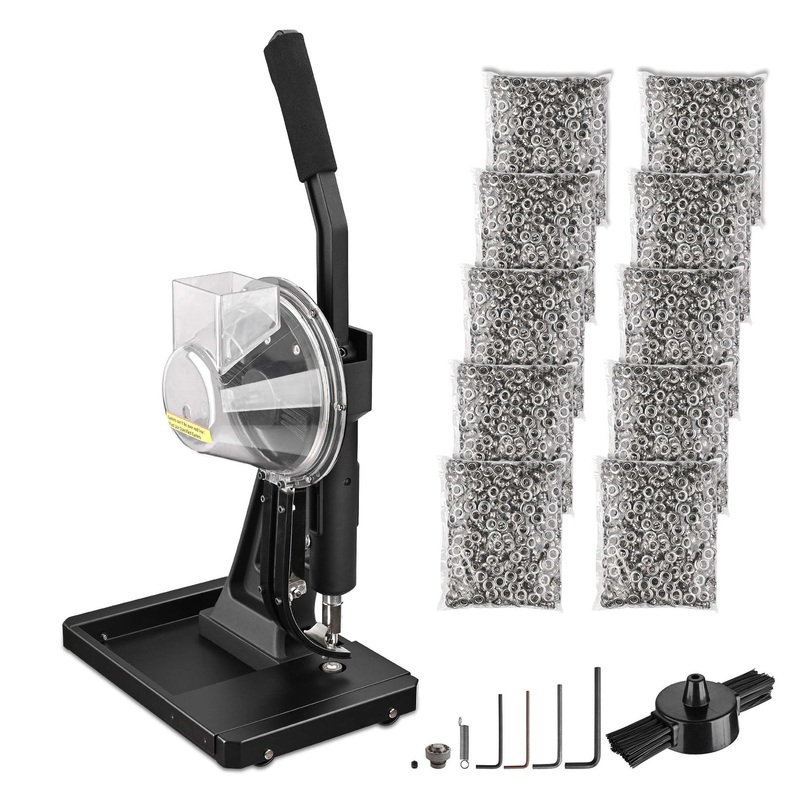 Features: -Automatic Feeding & High Efficiency - 8 11/16" x 13" x 24 5/8" Commercial Semi-automatic Grommet Machine comes with 10000pcs #2 10mm grommets and features automatic feeding and a large feeding case, allowing you to insert up to 250 grommets each