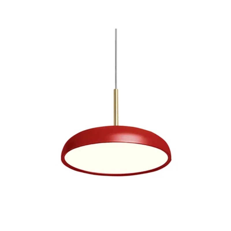 Suspensions and ceiling lamps in turned aluminum sheet in various sizes, painted with epoxy powders. Available in different finishes, with gold anodized aluminum detail (for the pendant lamps). Integrated SMD LED light source direct. TRIAC dimmable electronic power supply included.
